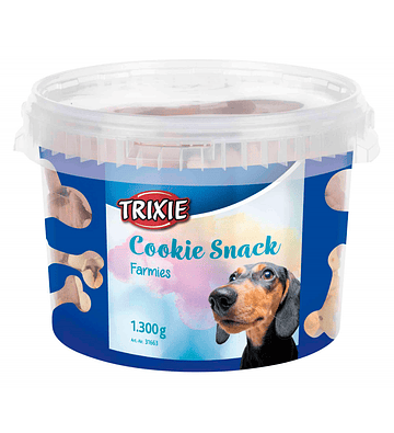 Os Cookie Snack Bones são biscoitos feitos no forno em forma de osso, ideais para dar ao animal entre as refeições ou até mesmo para premiá-lo depois de um treino. Esta fórmula de biscoitos vai fazer as delícias do seu patudo. O balde com tampa hermética, mantém as propriedades do alimento por mais tempo, ajudando a conservar a sua frescura.